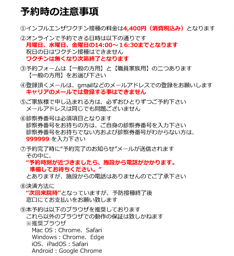 インフルエンザ予防接種の受付開始しました