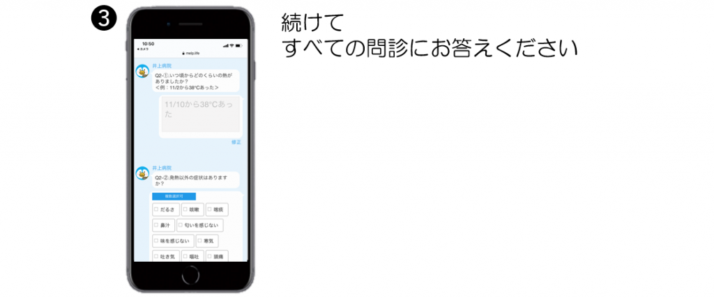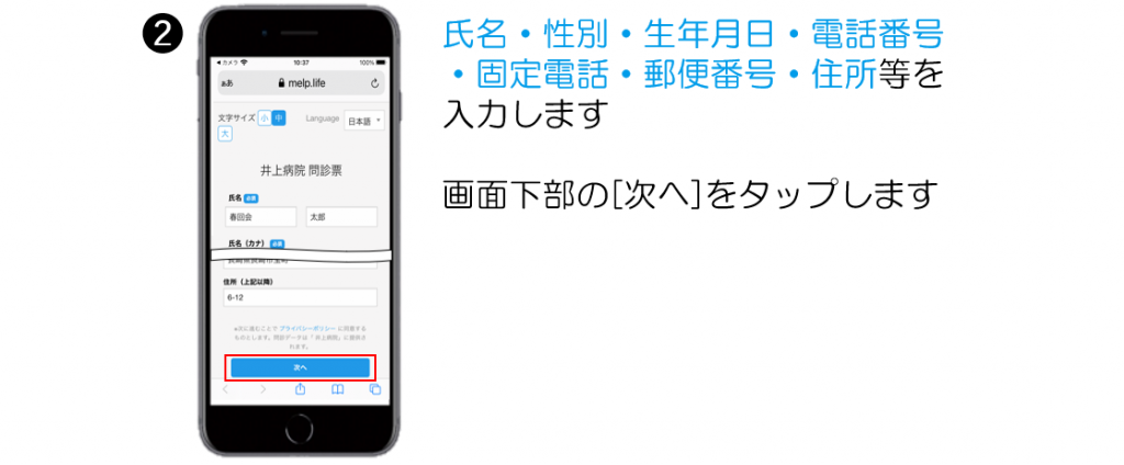尚、スマートフォンでの事前入力が難しい患者さまにつきましては、従来通り来院時の問診で対応させていただきます。